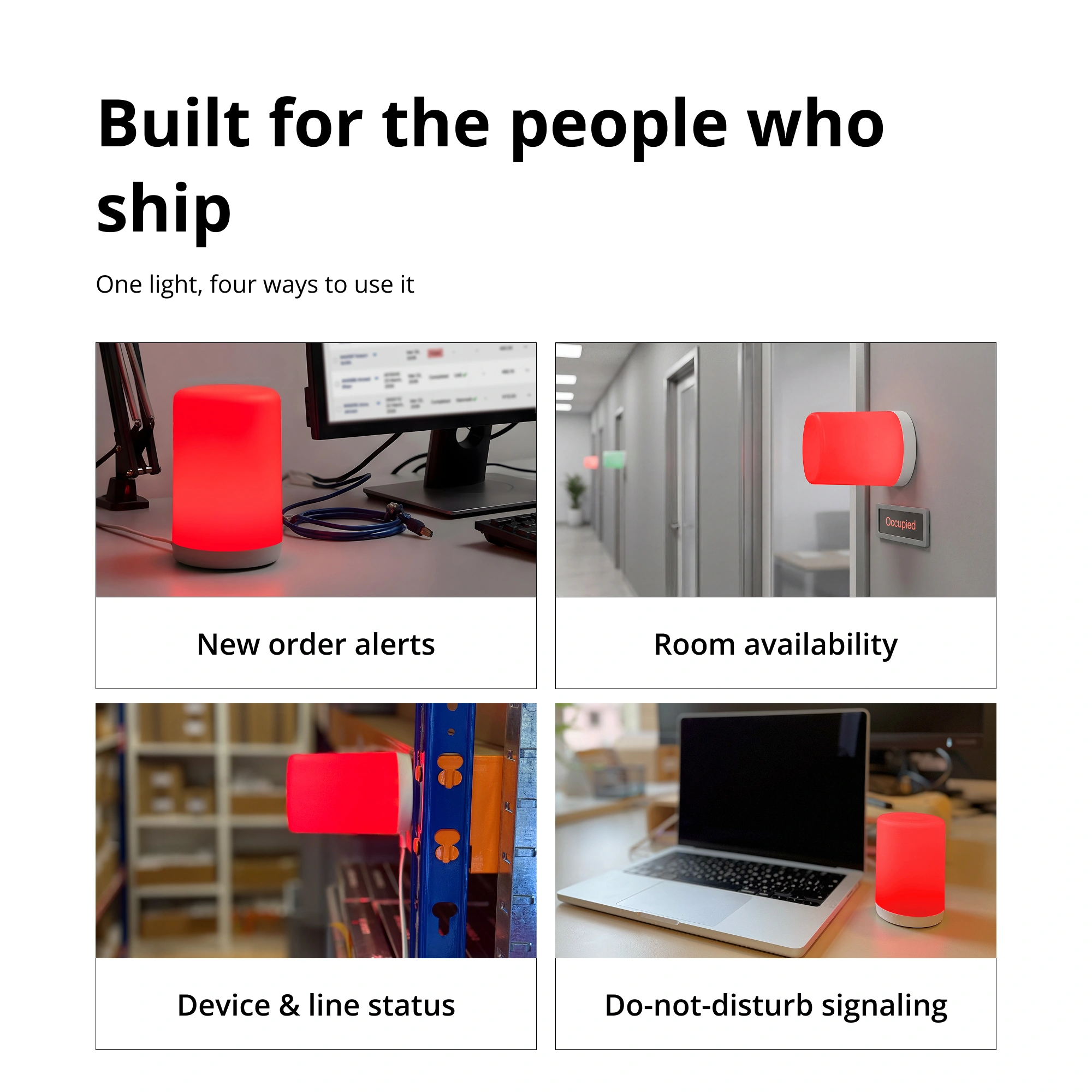 Signal lights up and plays a sound the moment something needs your attention — a new order to ship, a room that’s free, or a device that’s down