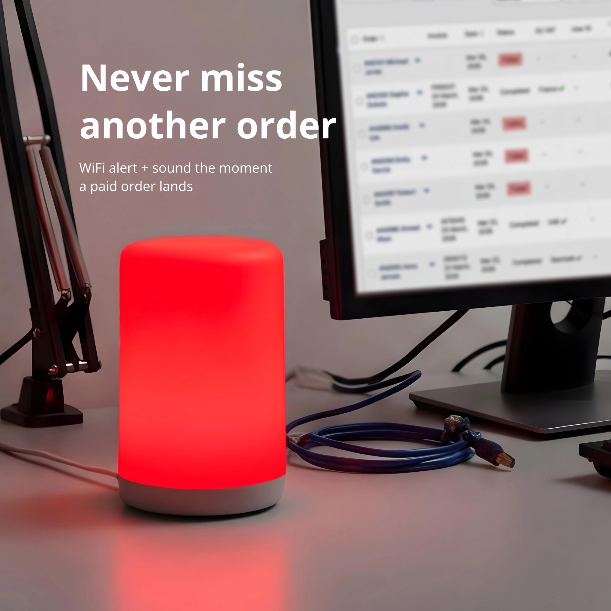 New paid order? Signal lights up and plays a sound within seconds. No tab-checking, no app-switching. You see it from across the room.